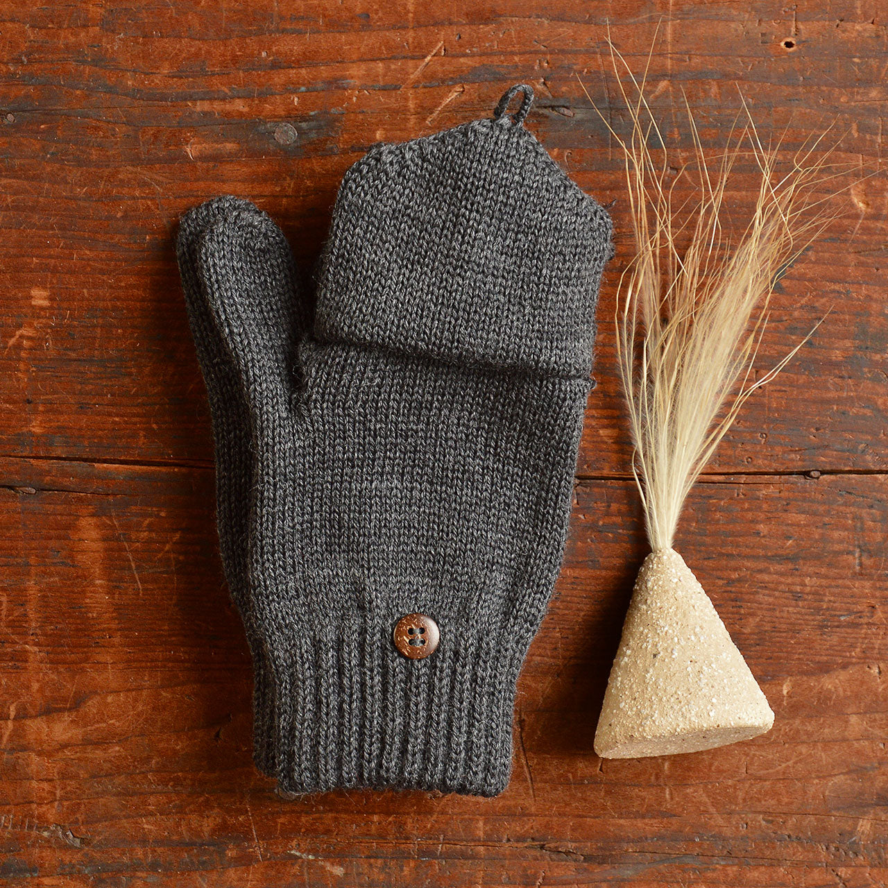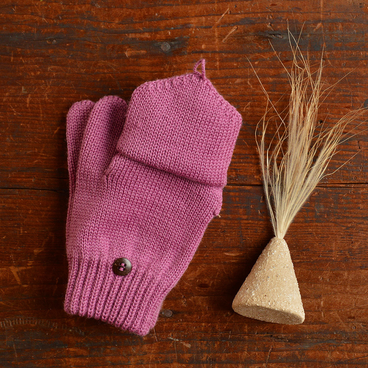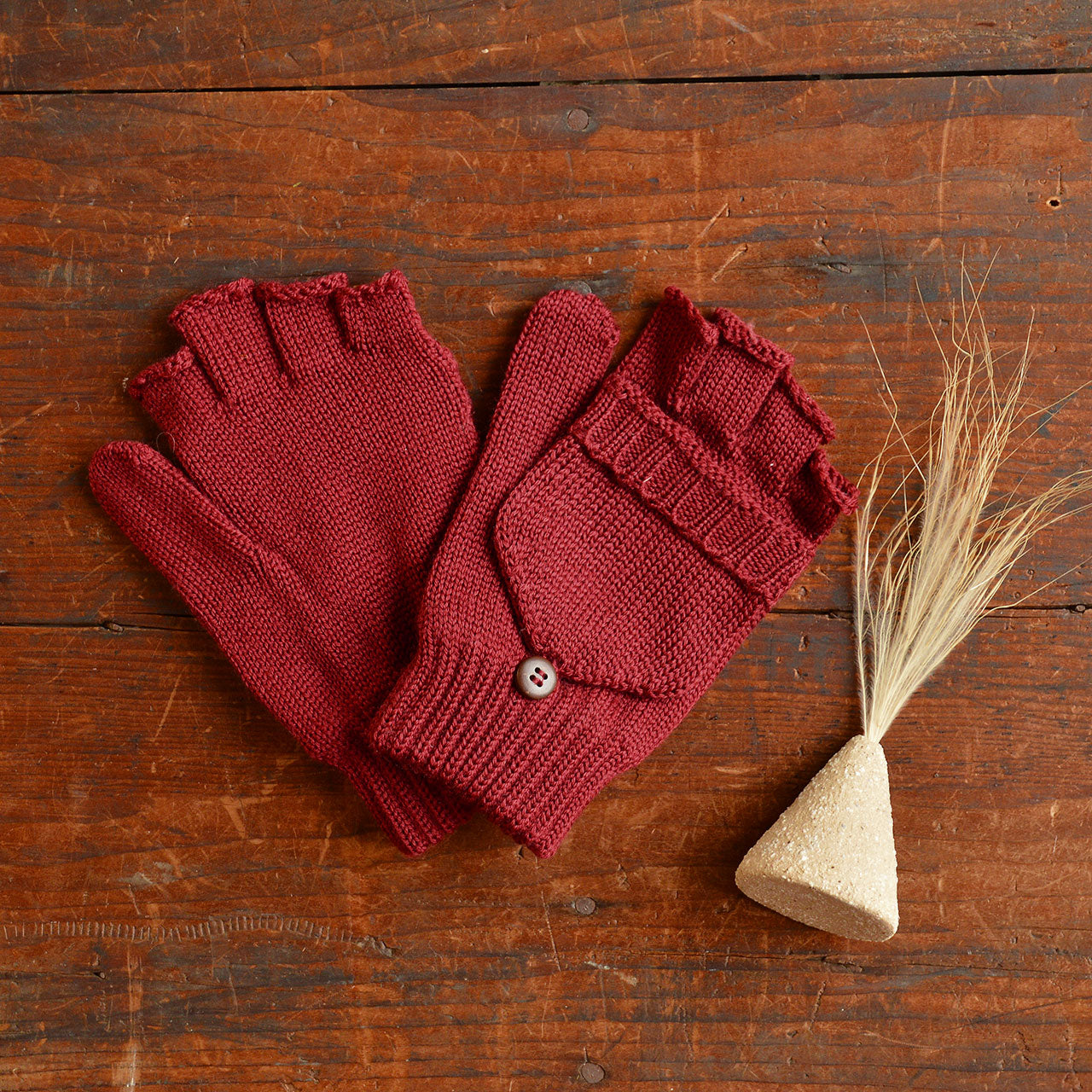 These cosy knit gloves by Pure Pure have an optional mitten top that buttons back when not in use. In lovely warm 100% GOTS Certified organic merino wool.