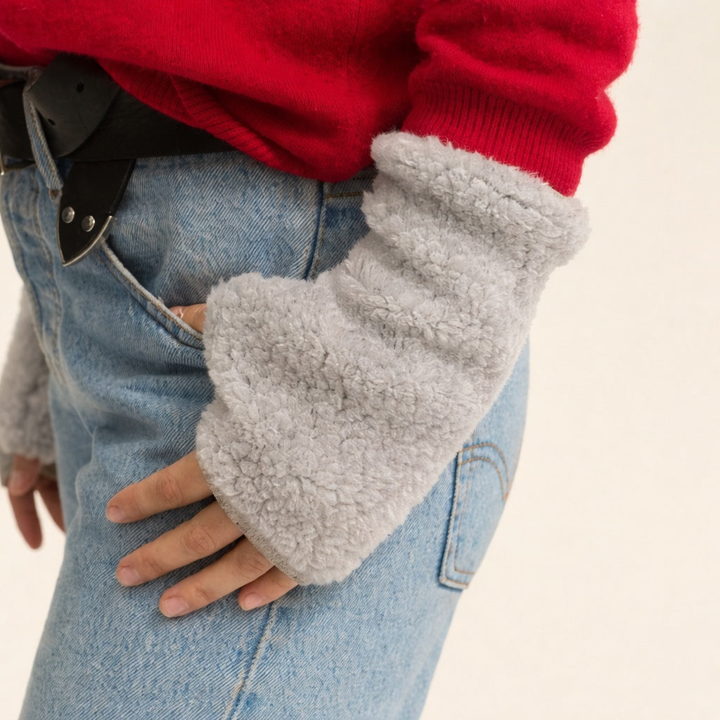 Gorgeously cosy teddy mitts with thumbs in 100% wool fleece. Warm, practical and stylish! Three sizes.