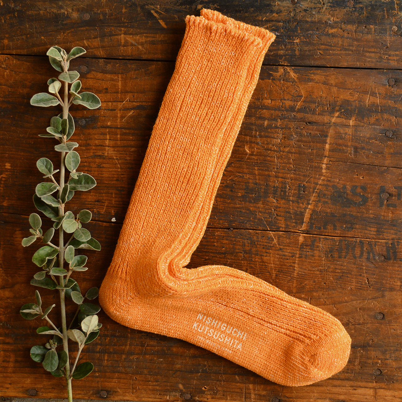 Nishiguchi Kutsushita combined hemp with their signature 100% virgin cotton to produce socks that are breathable and feel dry to the touch. The hemp adds a crisp and cooling effect to the cotton. The crisp texture and worn-in comfort makes them a necessity for hot summer days. Hemp is a plant which requires no pesticide and helps condition the soil.