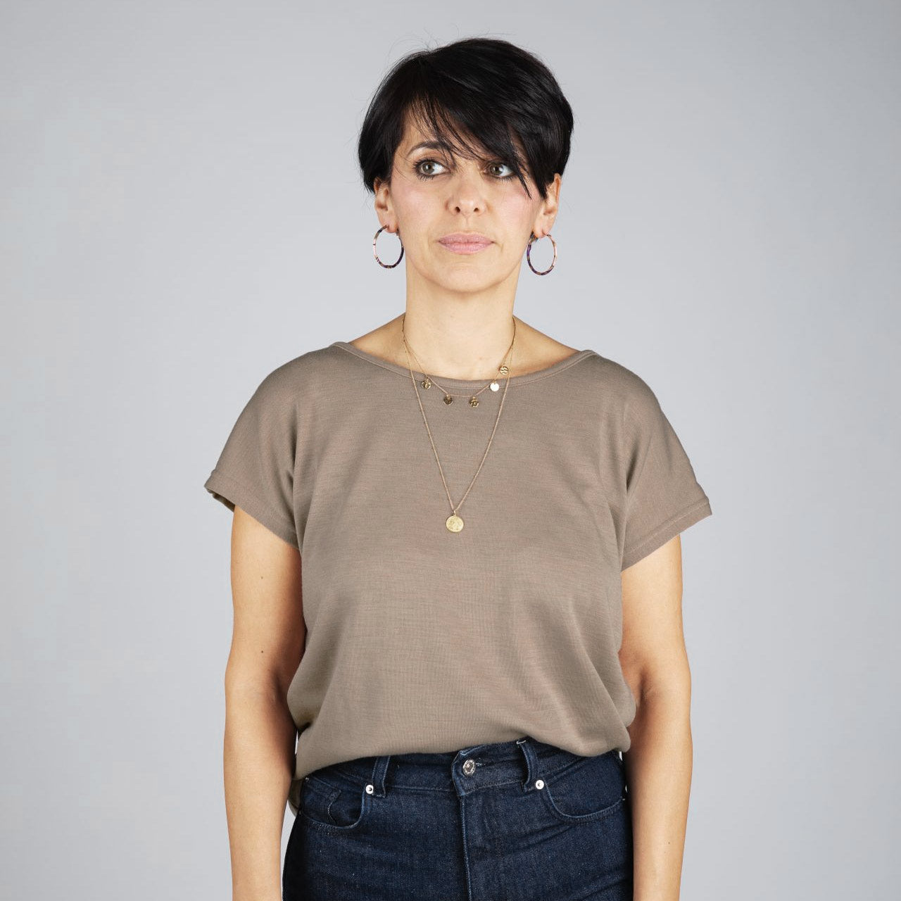 This women's short-sleeved shirt with a modern dropped shoulder is a true feel-good basic. Wonderfully comfortable for Spring/Summer wear. Temperature regulating, non-sweaty and super soft in pure organic natural fibres.