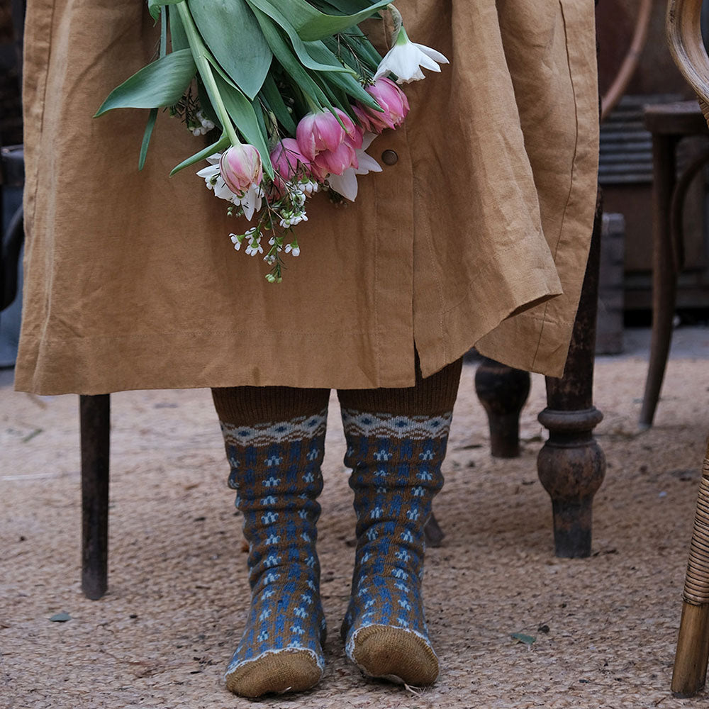Truly gorgeous long socks made from recycled lambswool in Sweden by Öjbro Vantfabrik, dyed in subtle natural colours. Knit with reinforced heel & toe for extra strength. Wonderfully cosy to wear at home, they also make perfect winter socks with boots. So soft and warm!