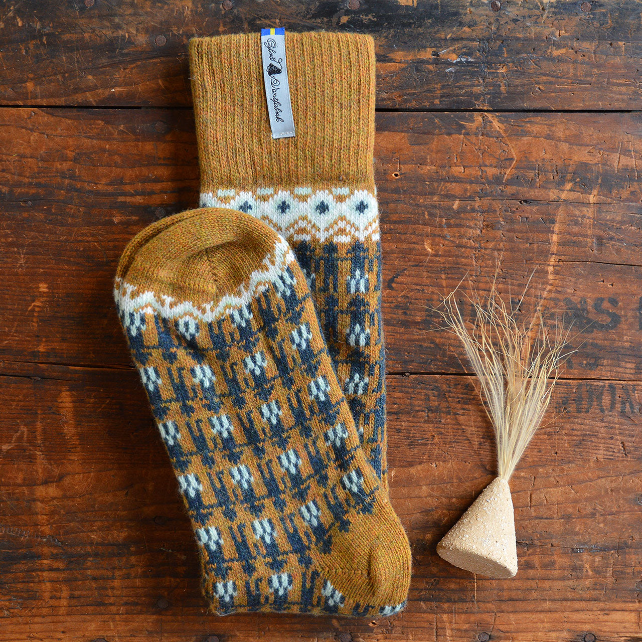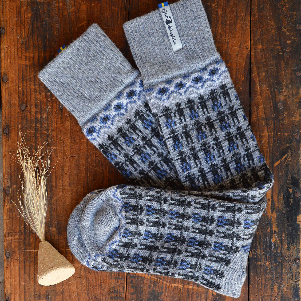 Öjbro Vantfabrik is dedicated to preserving and sharing Swedish knitting heritage. Each pair of beautiful jacquard knit socks features a design drawn from traditional patterns and personal stories.