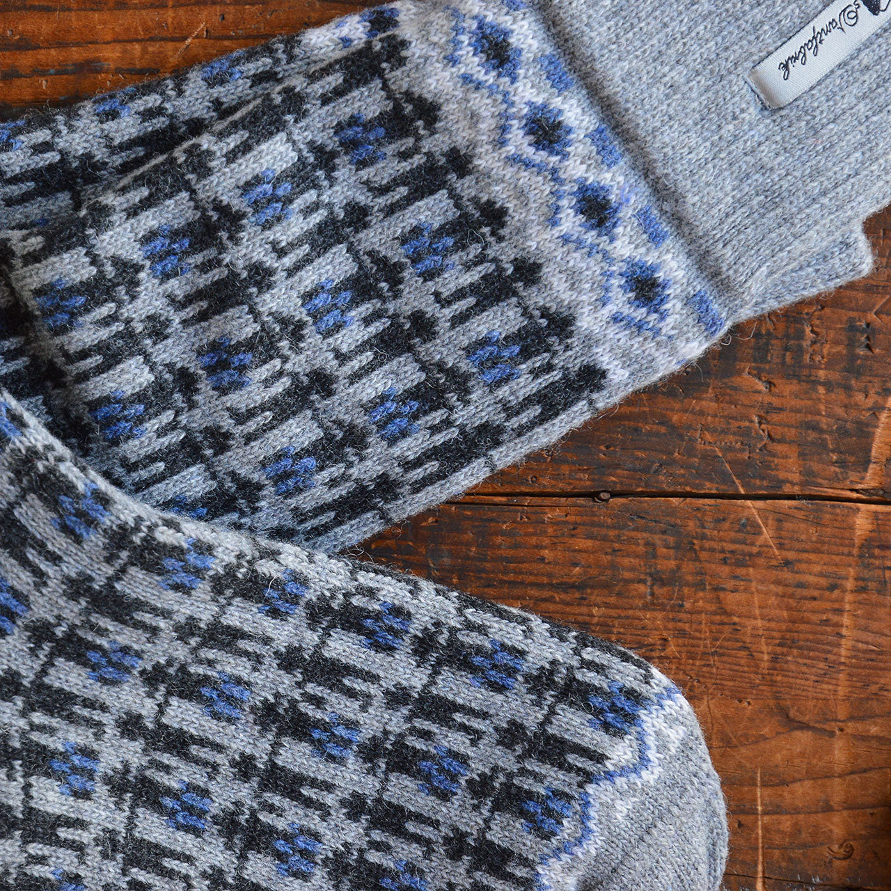 Because jacquard socks have floats on the inside, we recommend you put your socks on like your mum used to do for you when you were a child. Bunch them up to the toe, put your foot in place and then unravel the rest of the sock up your leg. Don’t try to just shove your whole foot in from the cuff as your toes might catch some of the floats!!