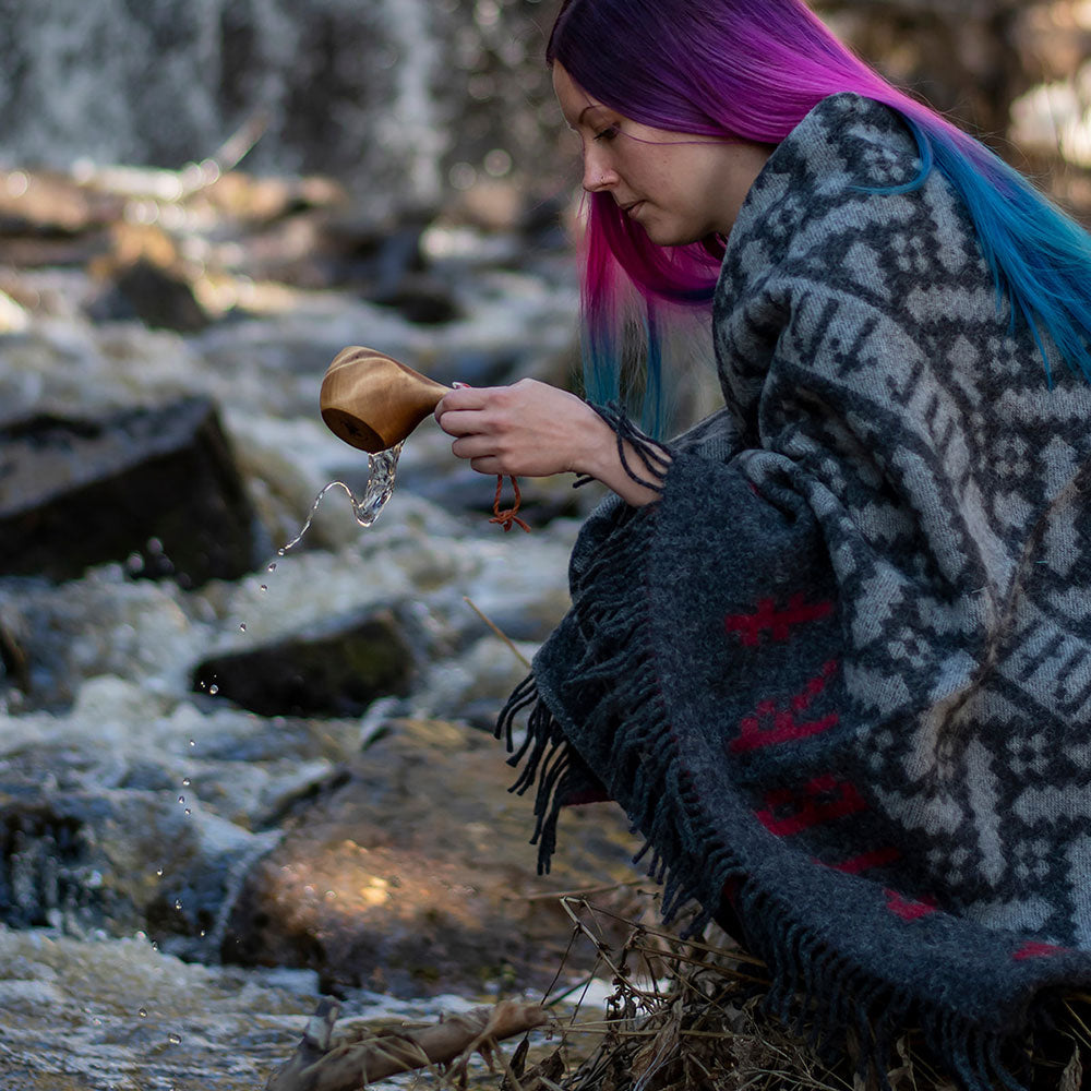 Öjbro Vantfabrik is dedicated to preserving and sharing Swedish textile heritage. The Futhark pattern is created with Swedish cultural history and symbolism in mind, and features the phrase “We honour our cultural heritage” woven in Futhark runic script. This pattern is also available in kneehigh socks. See below to read the Futhark story.
