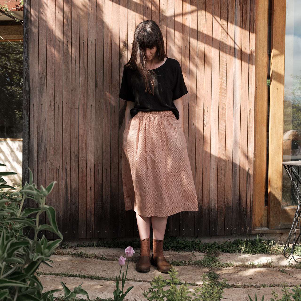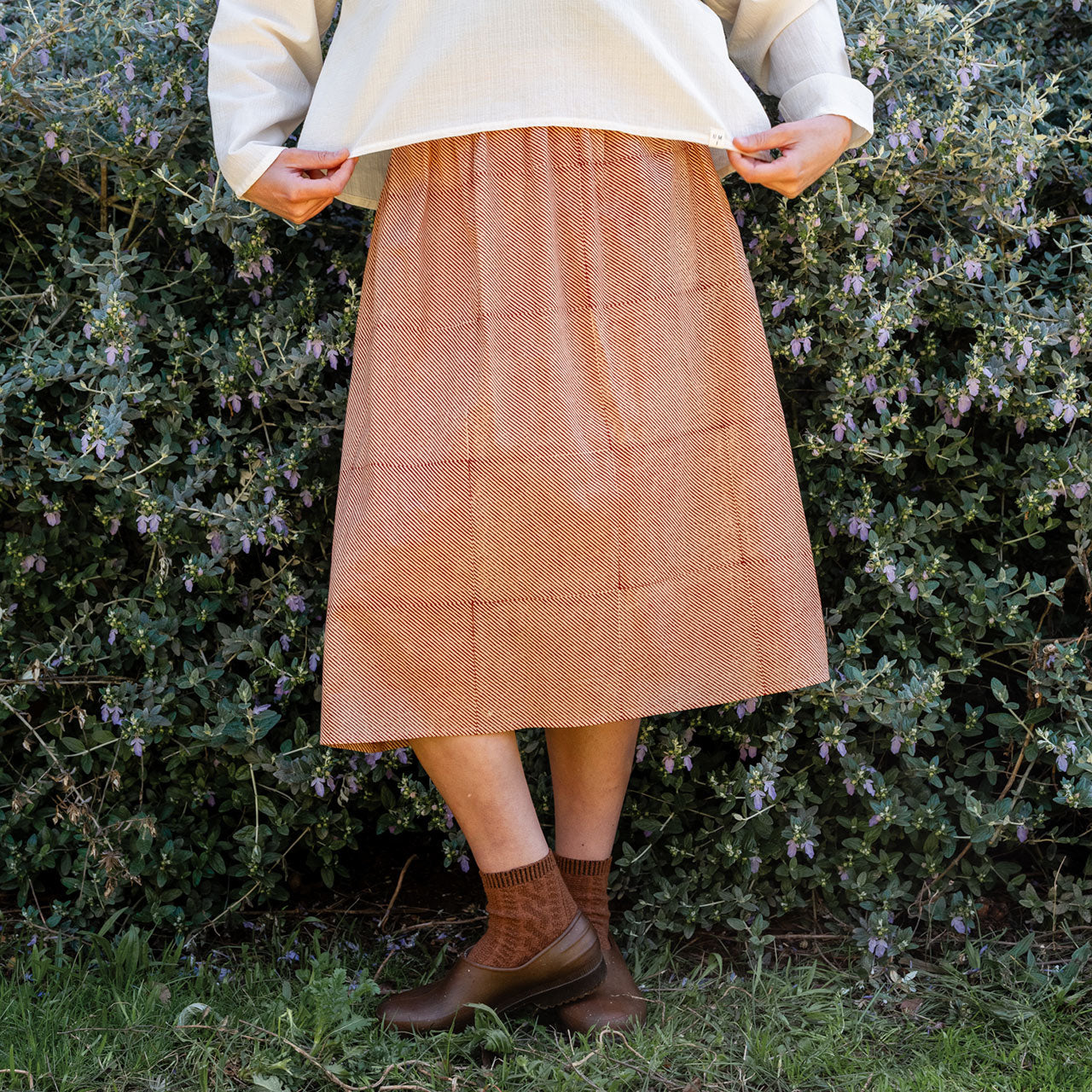 This pocket skirt is small batch made in Melbourne forUMIFORM in central Victoria.