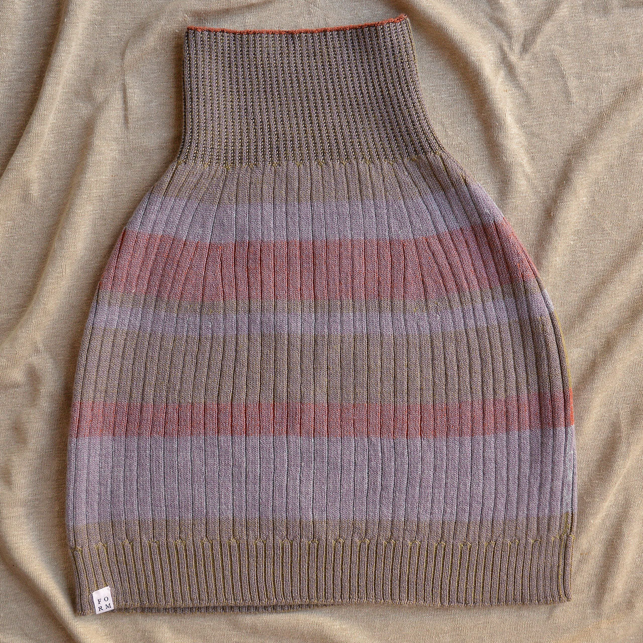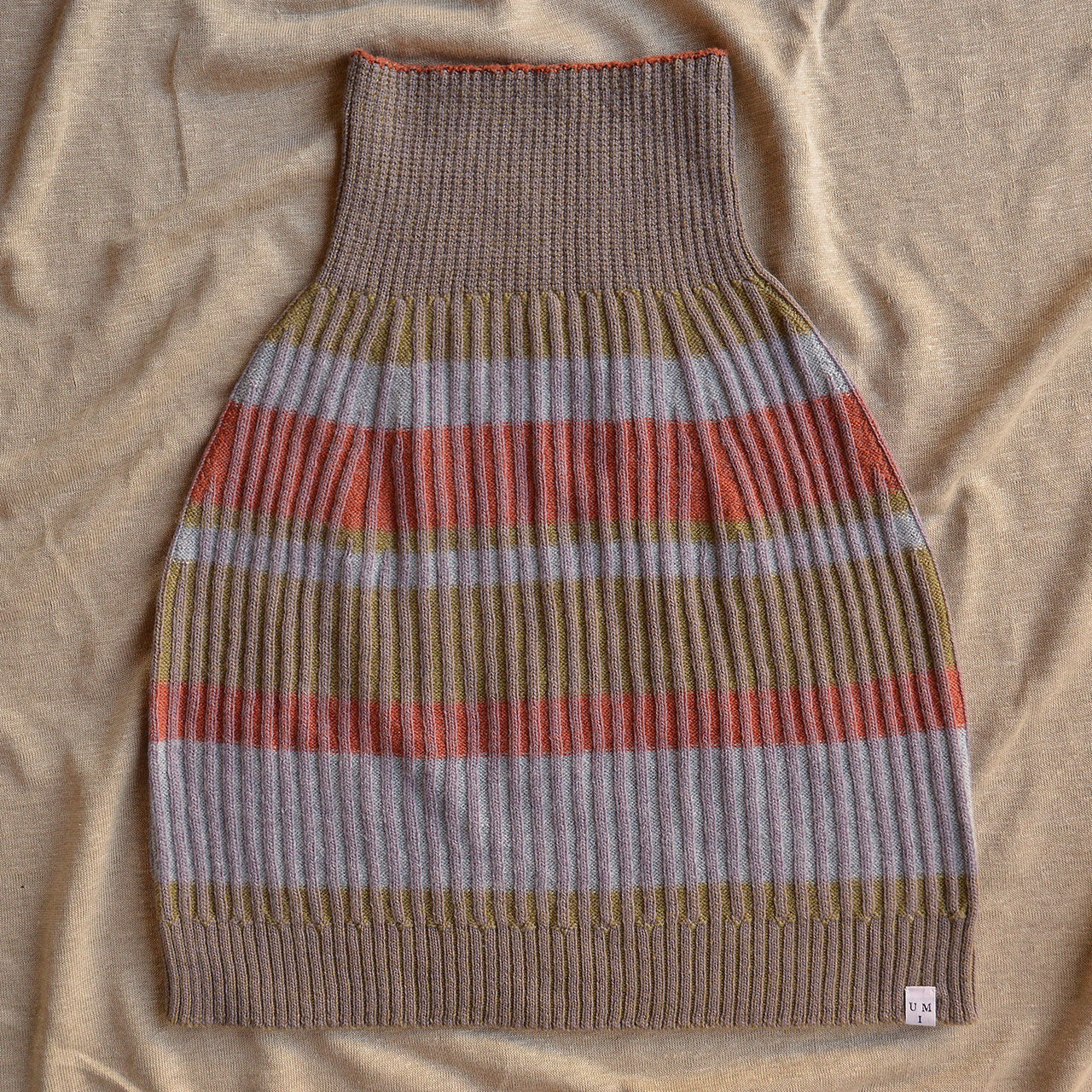 We've combined two of our favourite garments: a rib belly warmer & a mini skirt to create this amazing ribbed pure wool, high waisted skirt that is fully reversible and made entirely from plant dyed merino wool.