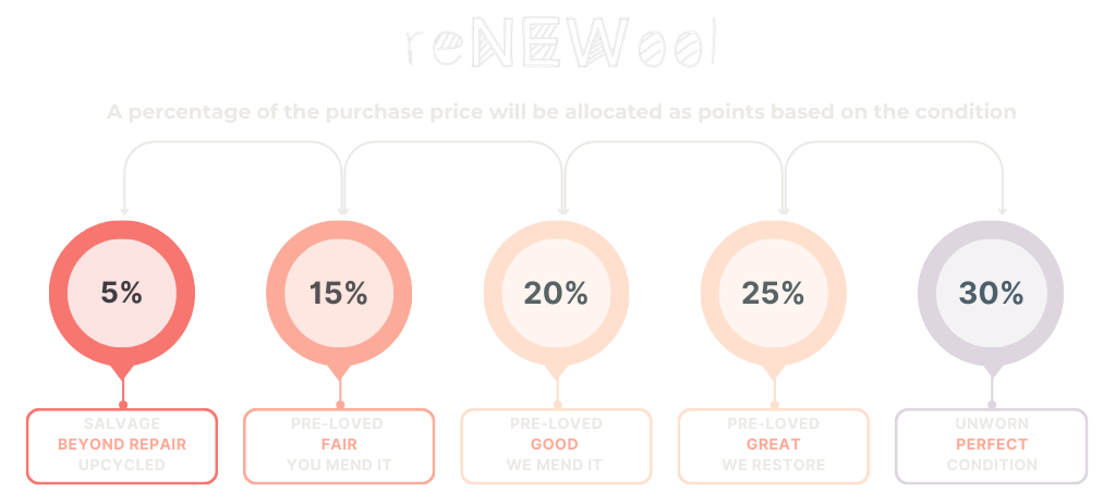 We offer you a percentage of what you paid for the garment as points based on its condition. The points can be then redeemed against future orders.