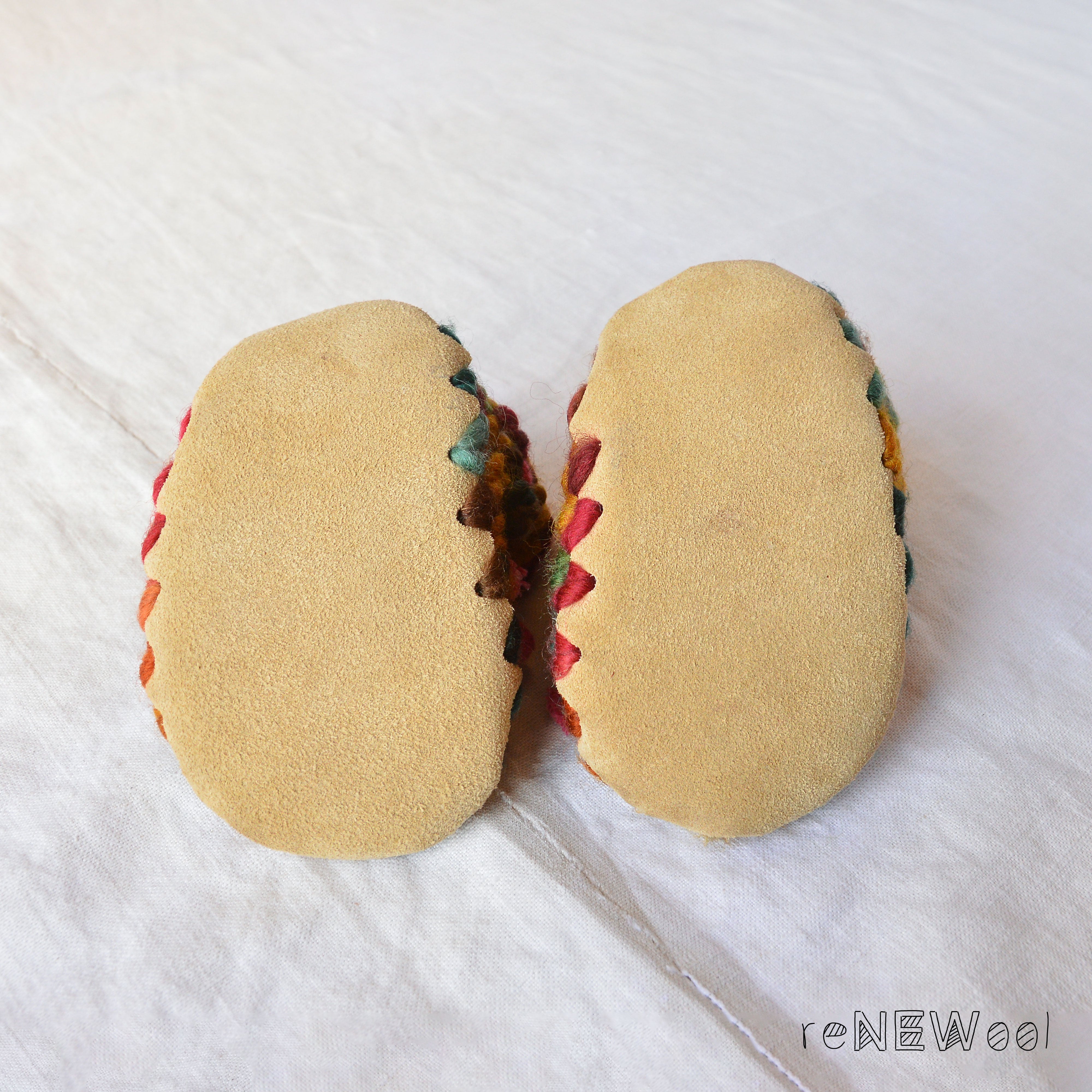 Soft and woolly with a sole of fluffy lambskin these are the ultimate in cosy footwear. Made by hand with natural materials these slippers are the cutest slippers you have ever seen. Ultra comfortable for your little one and made of lovely vibrant colours that will delight the whole family. A beautiful heirloom piece that lasts super well for handing down through the generations.